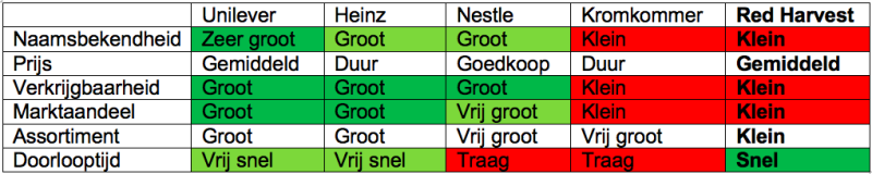 Unilever is een moederbedrijf met grote dochterbedrijven als Knorr, Becel, Calvé en Bertolli. Unilever zal dus ook kunnen concurreren op alle producten die Red harvest wil gaan verkopen. Unilever is dus een gigantisch bedrijf waarvan Red harvest veel concurrentie zal gaan ervaren.