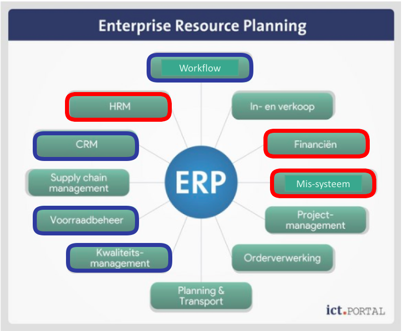 De afkorting ERP staat voor Enterprise Resource Planning. De definitie van een ERP-systeem is als volgt: een softwarepakket dat belangrijke informatie van verschillende bedrijfsafdelingen samenbrengt. Met een ERP-pakket worden bedrijfsprocessen geautomatiseerd, waardoor de productiviteit wordt verhoogd en de kosten kunnen worden verlaagd.
